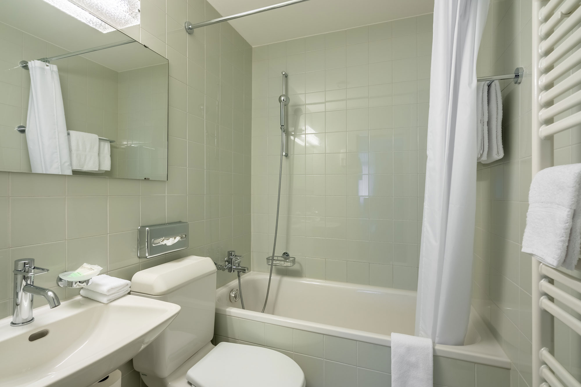 Chaque chambre dispose d’une salle de bain individuelle avec douche, d’une télévision, d’un bureau et du wi-fi gratuit. Les lits sont confortables et pourvus de draps en lin, classiques, de haute qualité.